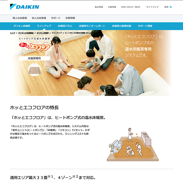 - 適用エリアは最大33畳・4ゾーンまで対応可能。各部屋の快適な暖かさを一括管理。