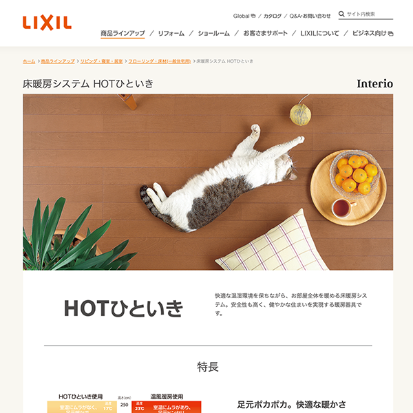 体にやさしい頭寒足熱の快適空間を実現。床面を約26~30℃に保ち足元から熱を伝えてじんわりと暖める。