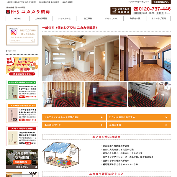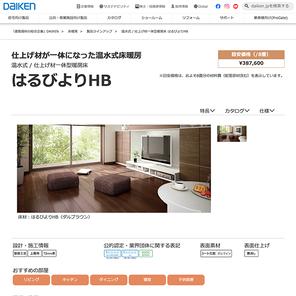 - 施工期間短縮、温水パイプとフローリング一体式で、昇温が速くランニングコストを軽減。