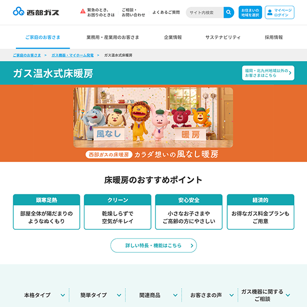 - ガス温水式床暖房は床暖房契約(ホットメリット)が適用されることによりランニングコストが軽減。
